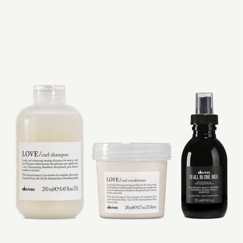CITRIC ACID.EHC LOVE CURL COND 250ML: AQUA / WATER / EAU, CETEARYL ALCOHOL, GLYCERIN, BEHENTRIMONIUM CHLORIDE, CETYL ALCOHOL, CETRIMONIUM CHLORIDE, DIMETHICONE, ORYZA SATIVA CERA / ORYZA SATIVA (RICE) BRAN WAX, BEHENTRIMONIUM METHOSULFATE, ISOPROPYL ALCOHOL, BENZYL ALCOHOL, DICAPRYLYL ETHER, PANTHENOL, PARFUM / FRAGRANCE, LAURYL ALCOHOL, AMODIMETHICONE, DISODIUM EDTA, SODIUM BENZOATE, POLYQUATERNIUM-10, PRUNUS AMYGDALUS DULCIS SEED EXTRACT / PRUNUS AMYGDALUS DULCIS (SWEET ALMOND) SEED EXTRACT, TOCOPHEROL, CITRIC ACID, DISILOXANE, TRIDECETH-12, LIMONENE.OI ALL IN ONE MILK 135ML: AQUA / WATER / EAU, CETEARYL ALCOHOL, PANTHENOL, BEHENTRIMONIUM CHLORIDE, PARFUM / FRAGRANCE, BENZYL ALCOHOL, CETYL ALCOHOL, TOCOPHEROL, AMODIMETHICONE, CETRIMONIUM CHLORIDE, AMODIMETHICONE/SILSESQUIOXANE COPOLYMER, SODIUM BENZOATE, TRIDECETH-5, CITRIC ACID, GLYCERIN, TRIDECETH-12, CYCLOPENTASILOXANE, PHENOXYETHANOL, HELIANTHUS ANNUUS SEED OIL / HELIANTHUS ANNUUS (SUNFLOWER) SEED OIL, BIXA ORELLANA SEED EXTRACT, HEXAMETHYLINDANOPYRAN, EUCALYPTUS GLOBULUS OIL, ACETYL CEDRENE, TERPINEOL, CITRONELLOL, LAVANDULA OIL/EXTRACT, GERANIOL, METHYL SALICYLATE, ALPHA-ISOMETHYL IONONE, CAMPHOR, PELARGONIUM GRAVEOLENS FLOWER OIL, LINALOOL, LINALYL ACETATE, LIMONENE, CITRUS LIMON PEEL OIL / CITRUS LIMON (LEMON) PEEL OIL, PINENE.